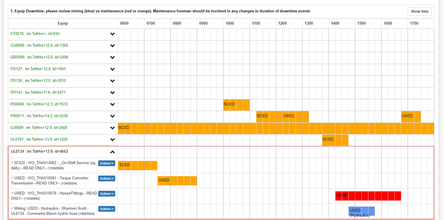- Reconcile miners (operator) against fitter (maintenance) downtime to build out the full time-usage model (Availability, Utilisation, UoA etc).