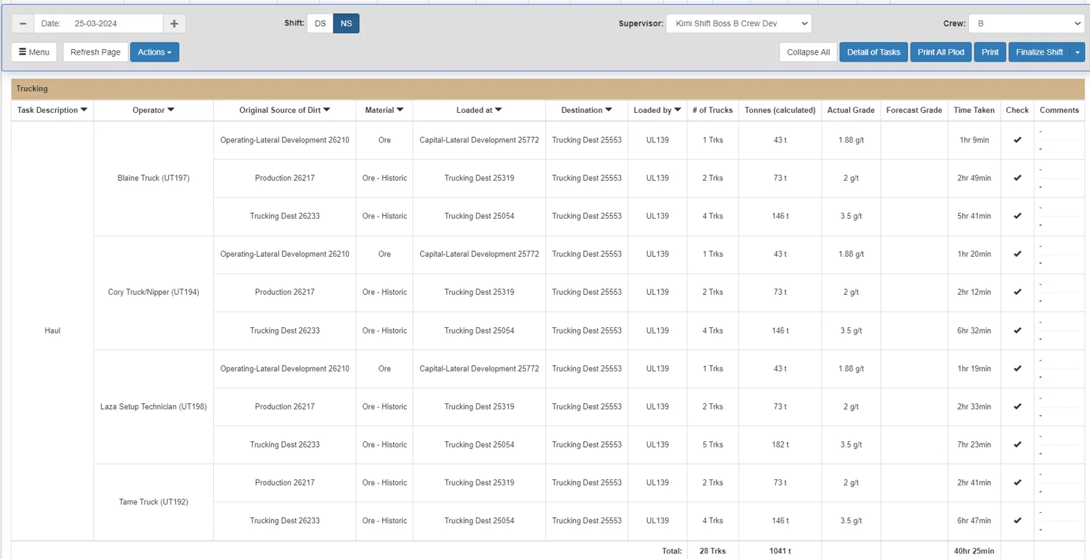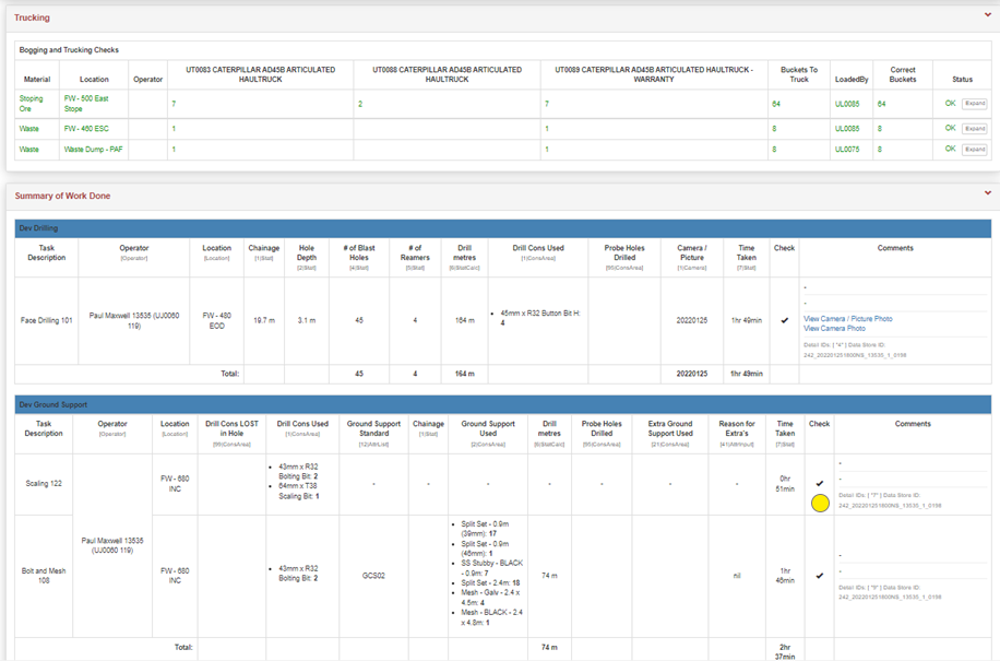 Simbio MANAGE takes the validated data from all operators and personnel activities thoruhgout the shift, bringing it seamlessly in front of the acocuntable person, for example the mining shift supervisor. They review and approve or edit (with full audit trails) the mining data. They review compliance to pre-work inspections, resolve hazards and assess QA and accuracy of production activities.