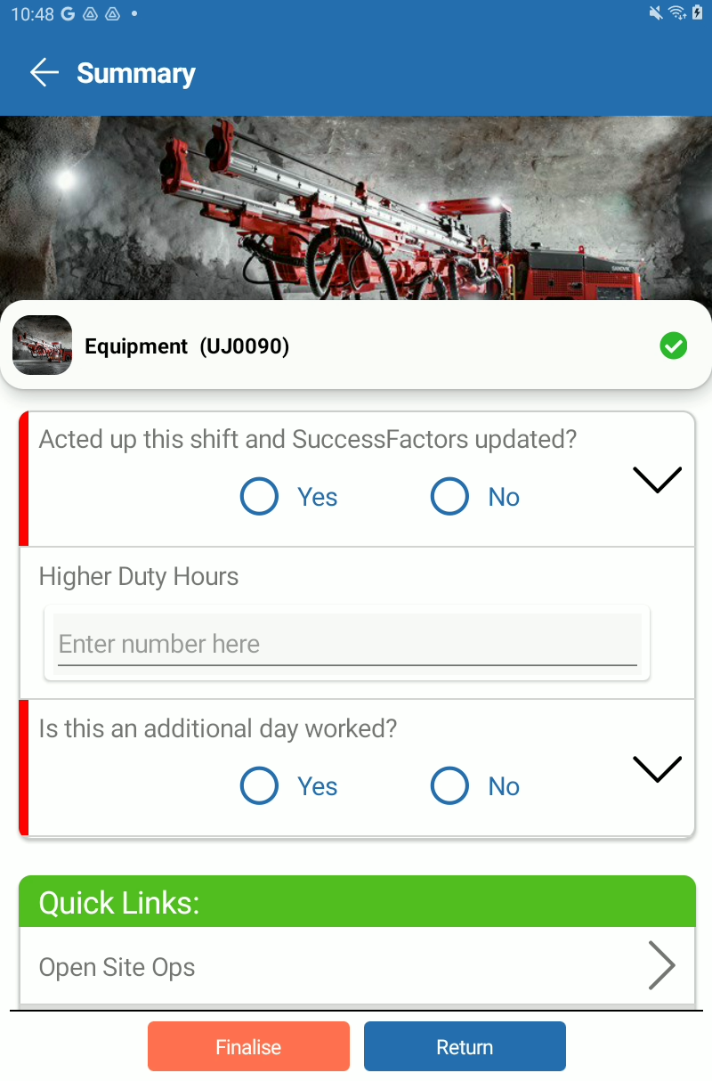 - Access history such as hazards identified, pre-start history, etc. direct on device
